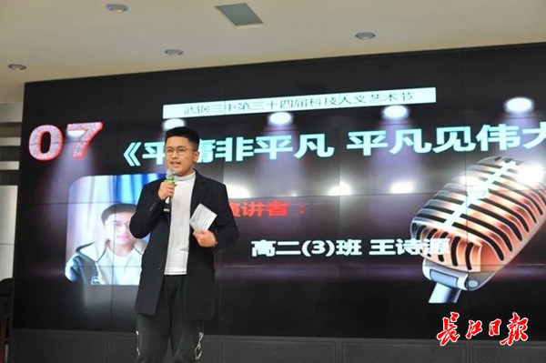 武钢三中相关负责人表示,科技人文艺术节是学校一项大型传统校园品牌活动,旨在营造积极向上、清新高雅、健康文明的校园文化氛围,激发广大同学爱国、爱校和热爱科技艺术、勤奋学习、努力成才的热情与动力,展现学生的青春风采和精神风貌,发掘学生个性特长,推进校园精神文明建设。