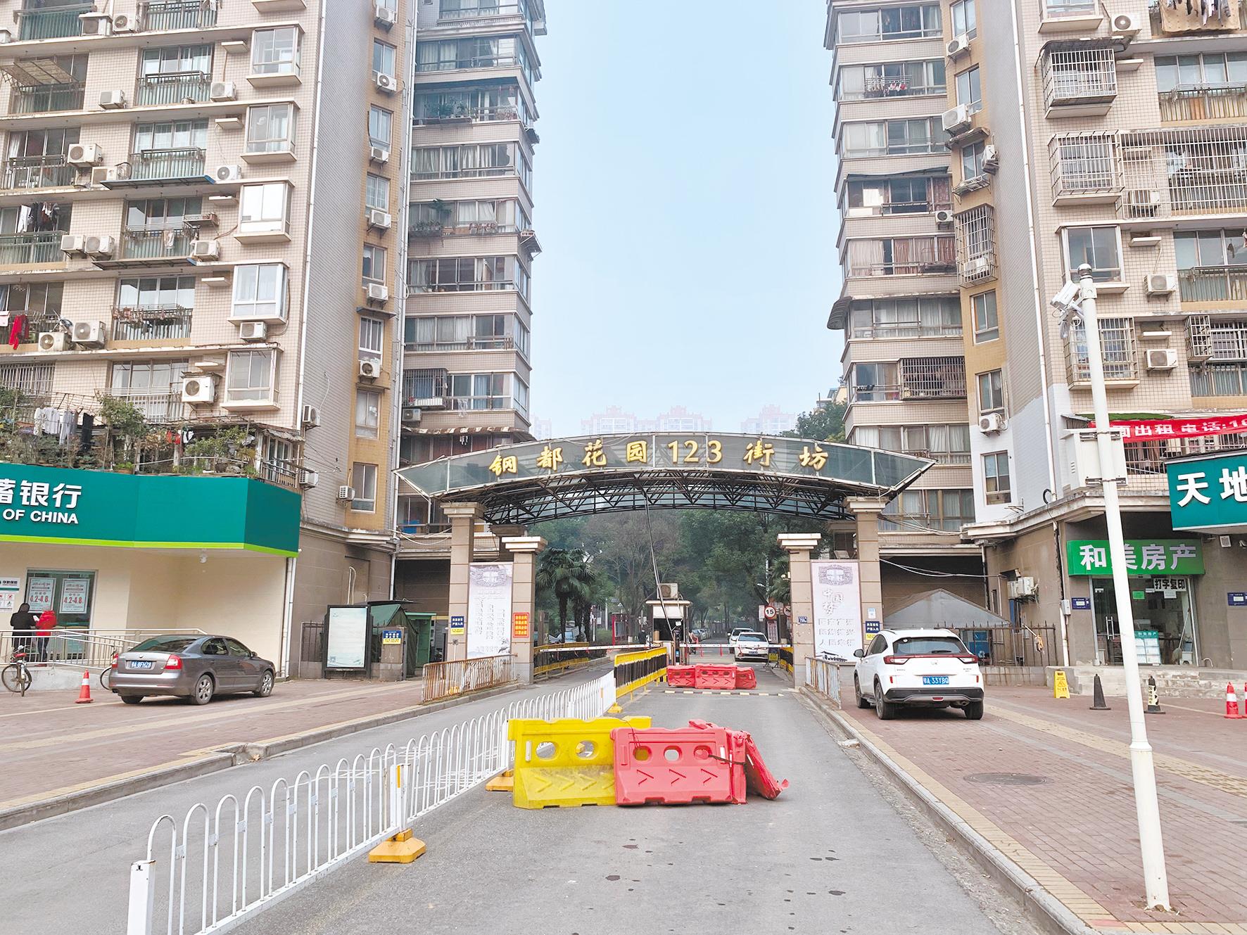 昨日上午,楚天都市报记者来到该小区看到,位于友谊大道的南门,有两个道闸,其中一个道闸只能出车,另一个道闸被水码封堵住了。岗亭的保安师傅说,疫情期间这个门可进可出,自从解封后,车辆只能出不能进,小区居民行人可自由出入。