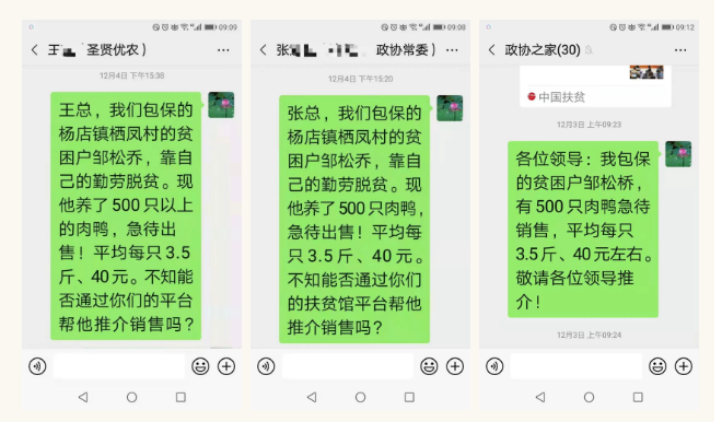 2020年12月3日,胡春新就在多个微信群里发布消息,问大家是否需要买鸭子。