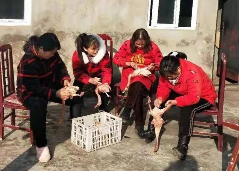 2020年12月22日上午,张国胜来到邹松乔家,与邹松乔家人一起,把鸭子一批批地送到杨店镇区菜市场一个做家禽生意的店家宰杀处理,再拉回家拔毛、破肚、腌制,忙得不亦乐乎。