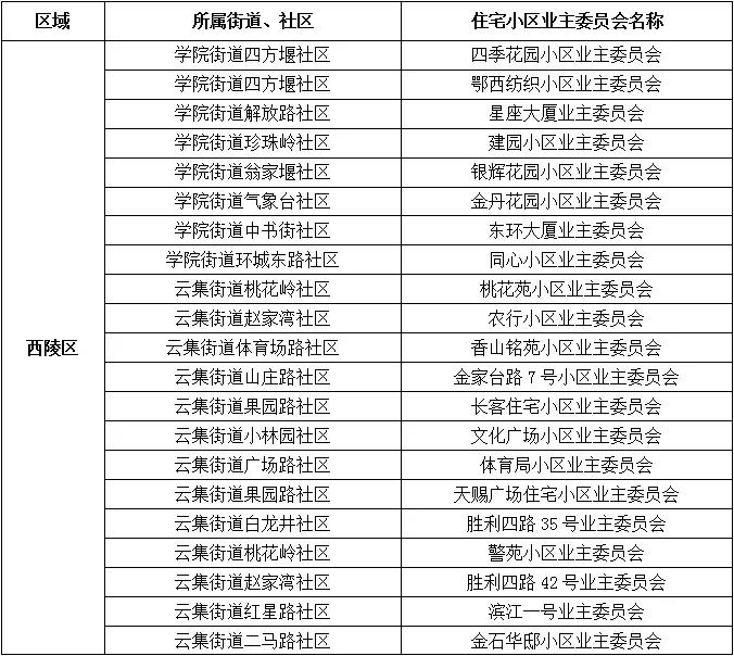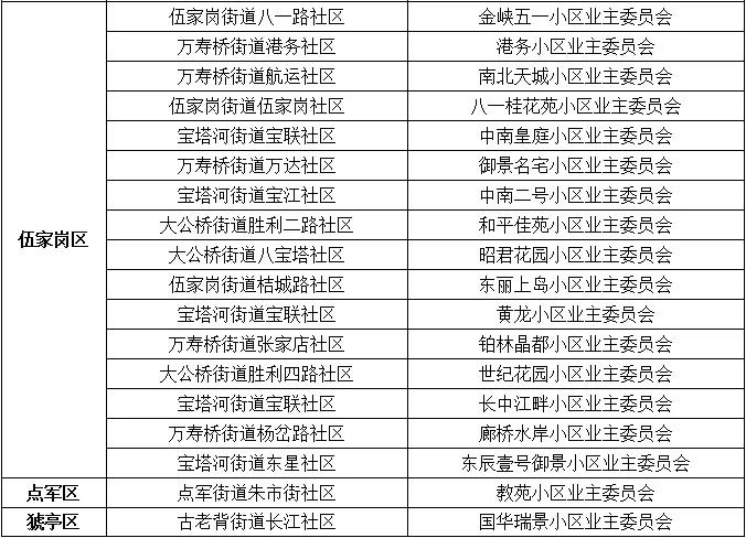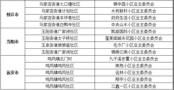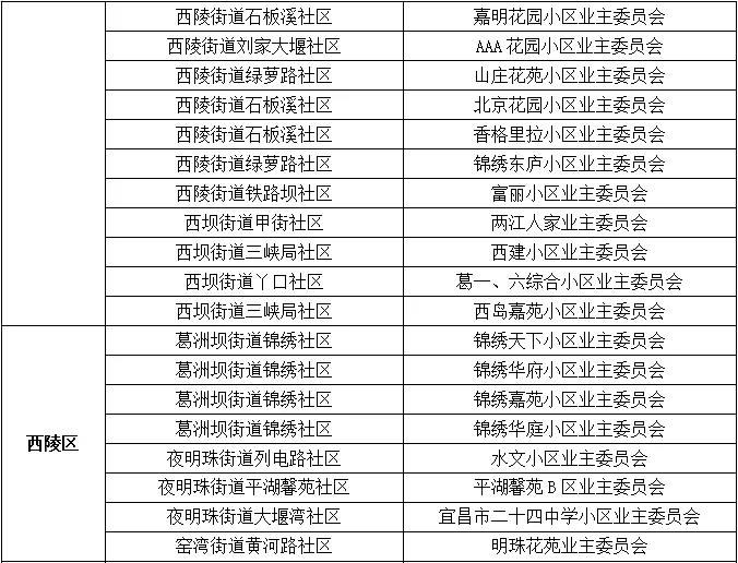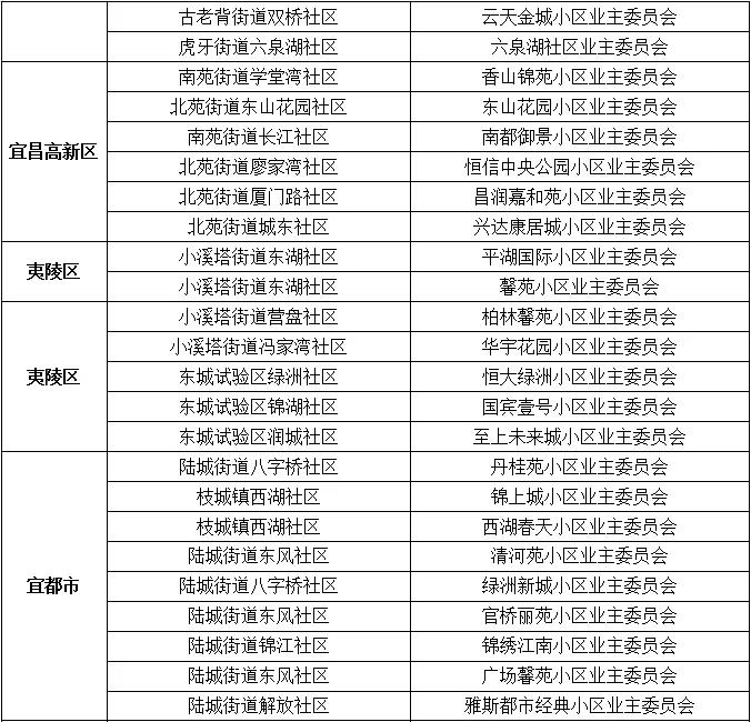 2020年度宜昌市五星级业主委员会名单