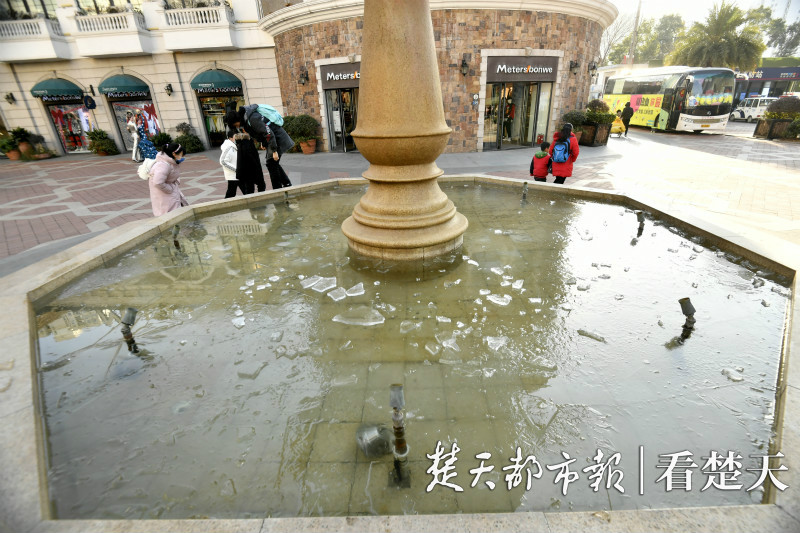 光谷步行街上一个被凝冻的喷泉,无声控诉着冷空气的强悍。