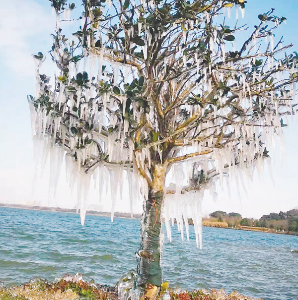 马鞍山森林公园北门附近树木现冰挂。孙鼎鼎 摄