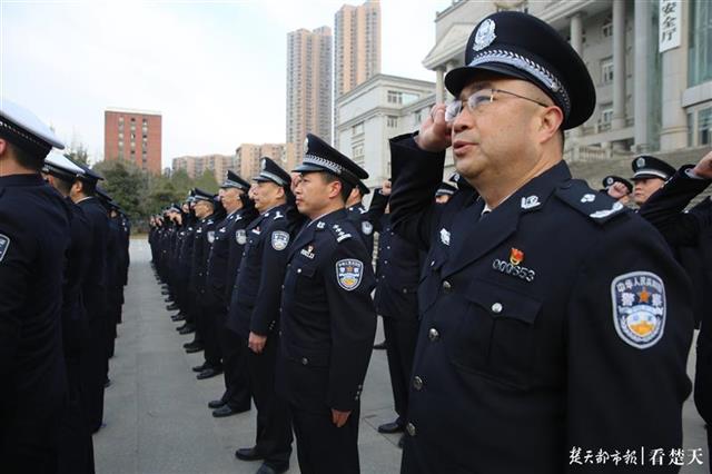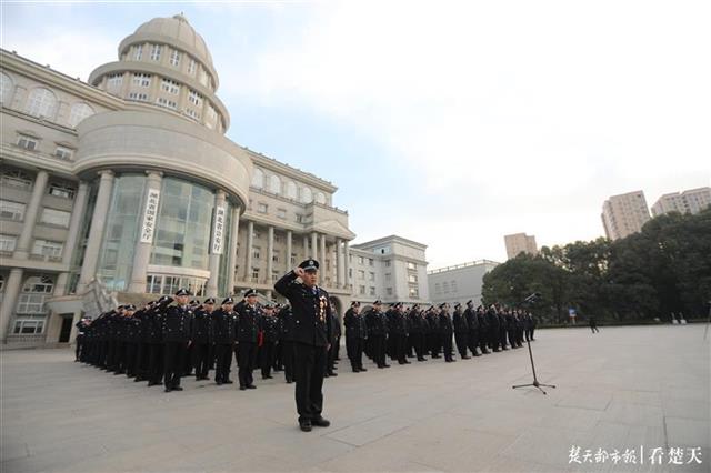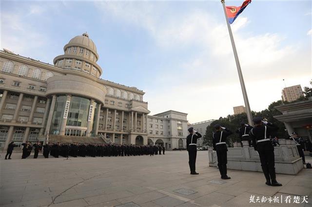 楚天都市报1月10日讯(记者黄忠 通讯员龚轩 李宗吾)1月10日,湖北省公安厅举行“警旗升旗仪式”,庆祝首个中国人民警察节。湖北省公安厅在汉全体党委成员和200余名民警重温入警誓词,誓言全力推进“平安湖北”建设。