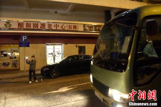 1月10日,香港红磡颐和园护老中心有职员初步确诊,部分职员及院友须送检。傍晚时分,身穿防护衣物人员协助护老中心职员及院友送检。图为防护人员车辆离开护老中心。 中新社记者 李志华 摄
