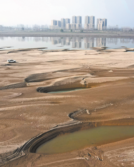 正处枯水期,长江武汉段天兴洲出现大小不一、连绵不断的沙坑。