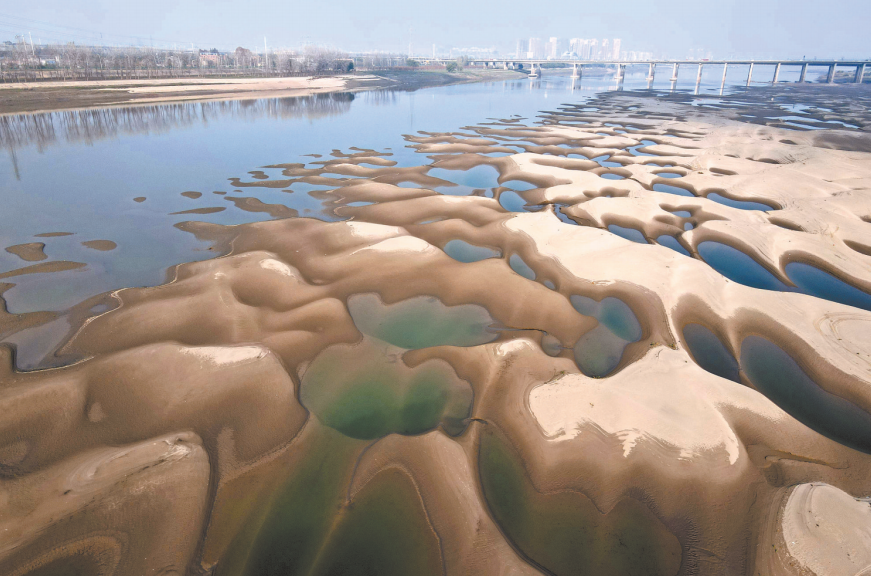 长江日报讯(记者王怡人)长江武汉阳逻段的江边因冬季枯水出现了河床、滩涂裸露景象。从空中俯瞰,这些裸露区域呈现出大小不一的坑洼,沙坑连绵颇具美感,引得不少市民前往观看。