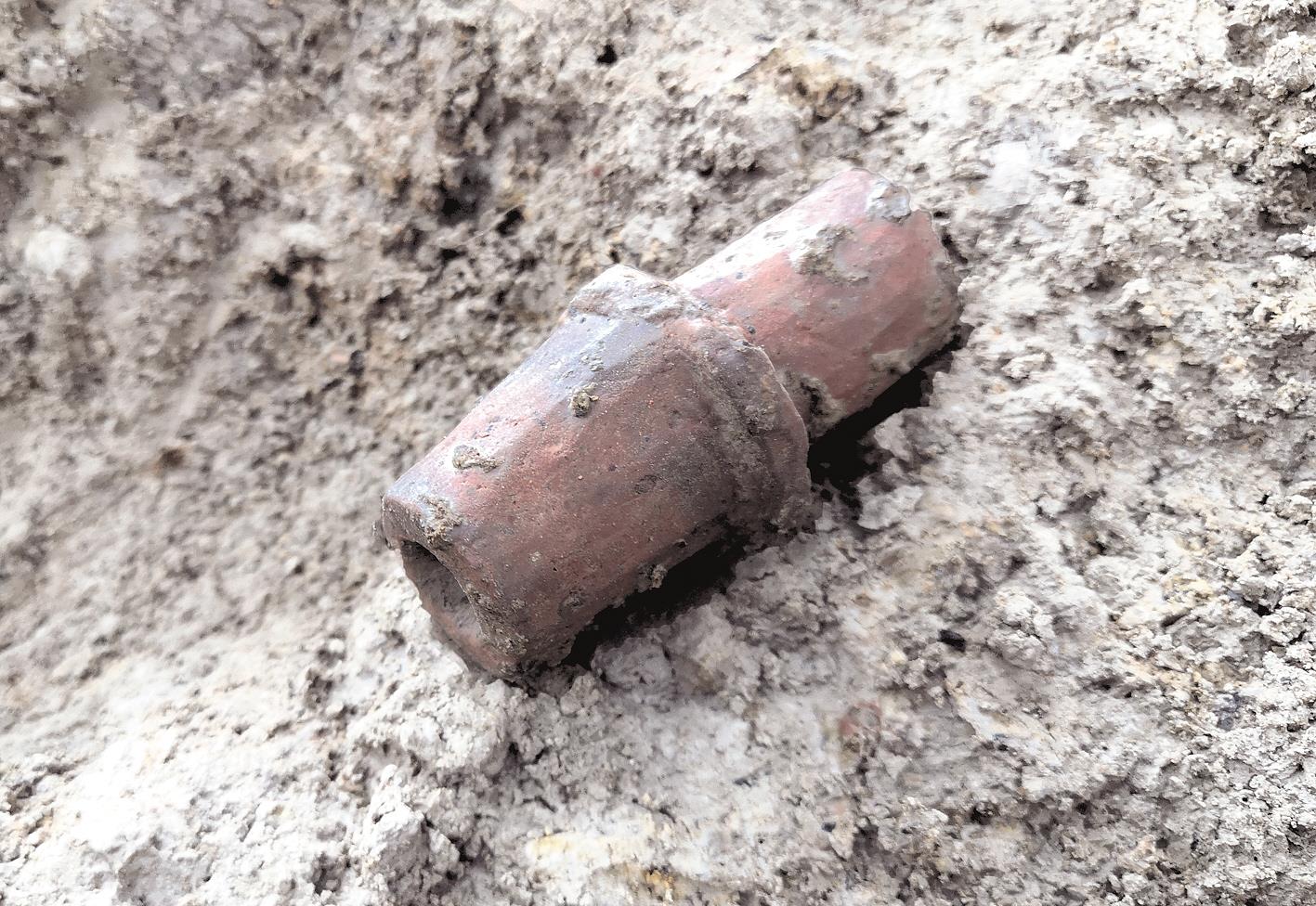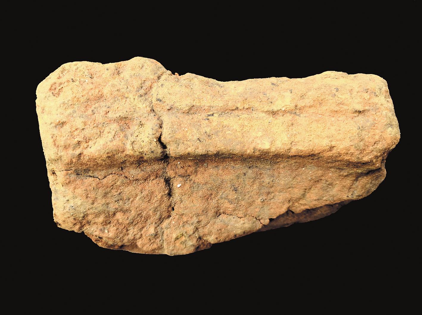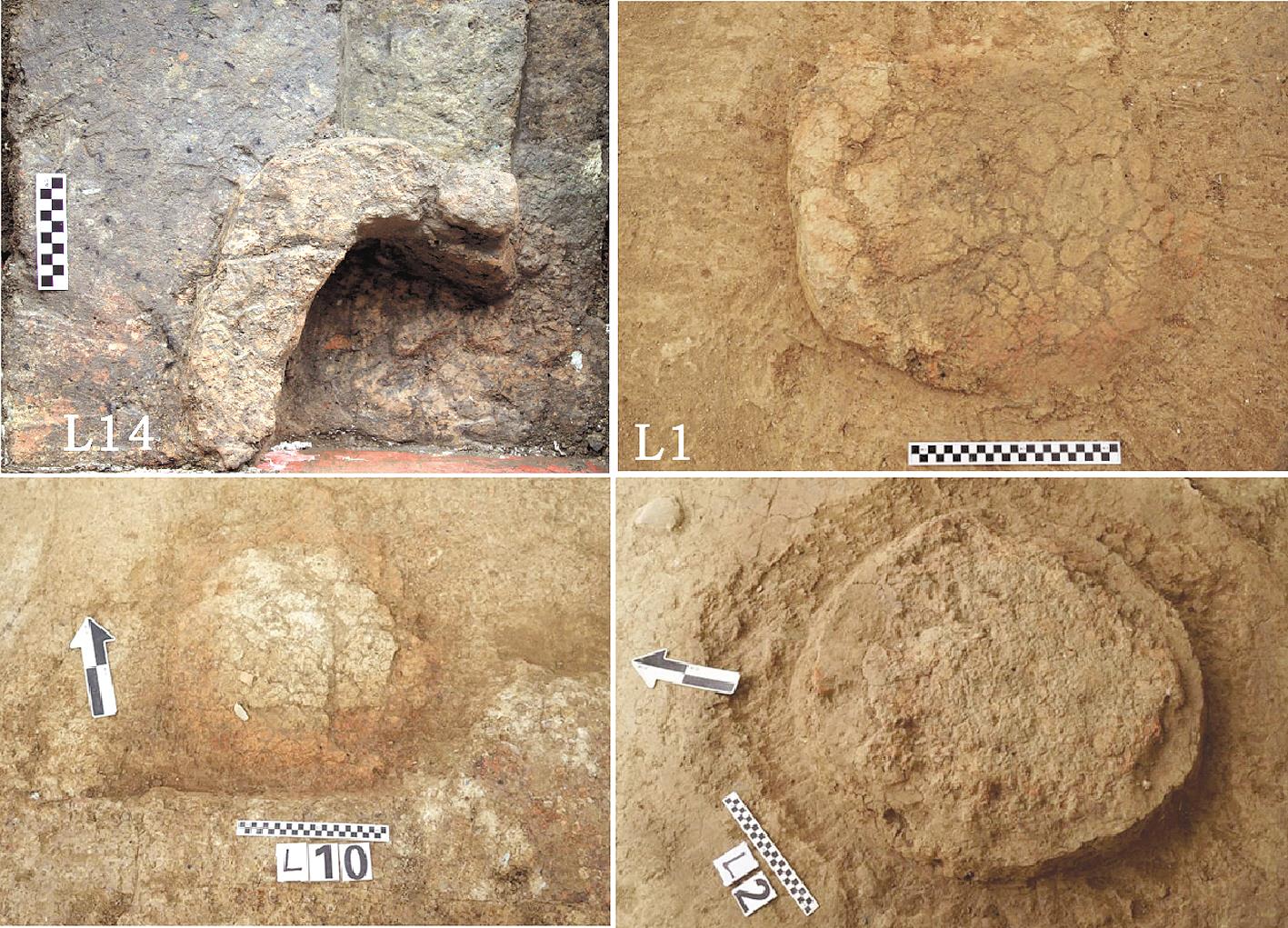 记者现场看到,已揭露的人工台地,位于鲁台山北麓、滠水东岸,台基上分布各类丰富的铸铜遗迹。胡刚介绍,已发现炉基10余个,另有灰烬沟、粗砂坑、陶范坑、工棚柱洞及因冶铸活动而形成的烧土面等遗迹。该遗址还出土大量冶铸遗物,其中,坩埚壁残块数量达80余件,陶范达120余块,石制、铜制生产工具105件。“其中一块陶范经复原研究,发现其直径达25.6厘米,表明可用来铸造大件青铜器。”胡刚说。