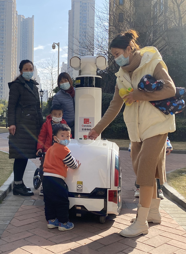 汉阳区金地澜菲溪岸小区机器人当起“安全宣传员”在小区巡逻。 通讯员彬 供图