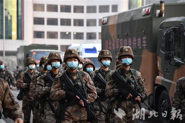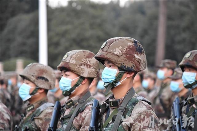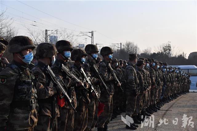 荷枪实弹,集结待命。湖北日报全媒记者魏铼摄