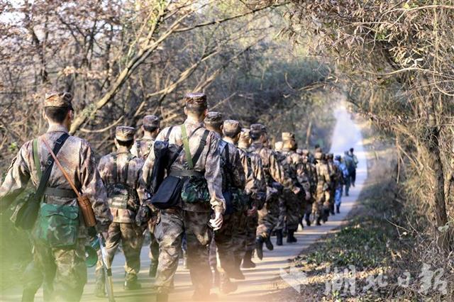 参训官兵摩托化机动到徒步行军目的地后集结。湖北日报全媒记者魏铼摄
