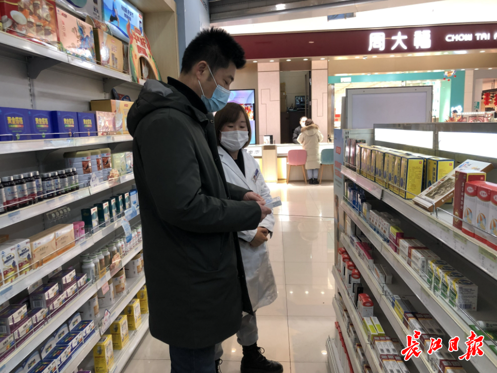 在武汉普安药房后湖店,店员指导消费者购药。记者黄琪 摄