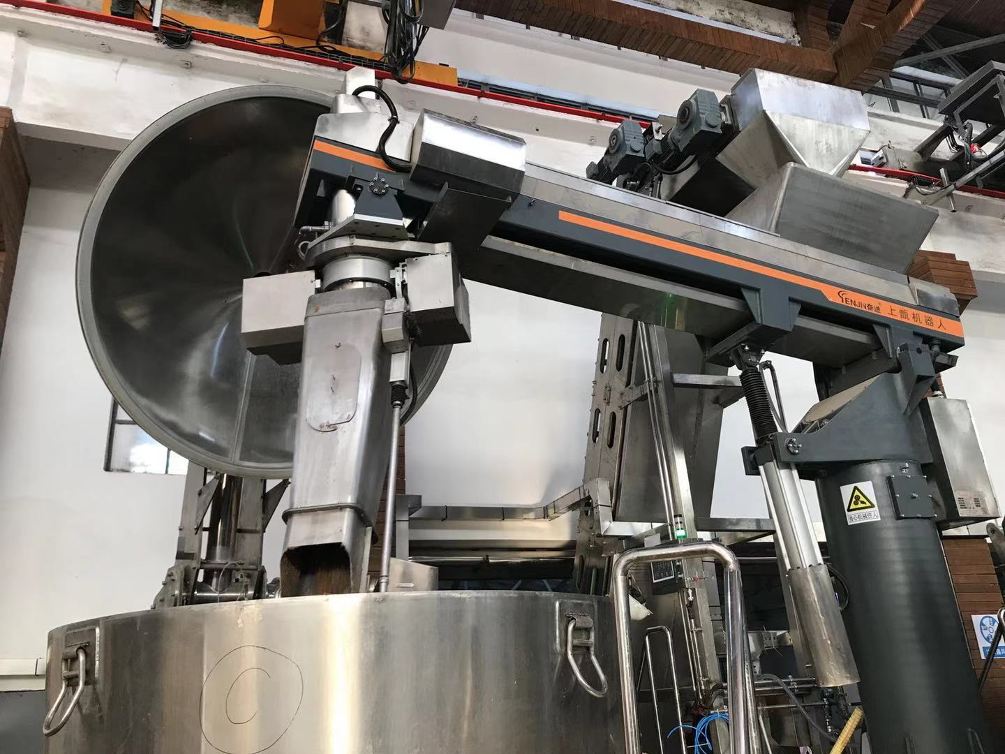 提香靠蒸馏,上甑,作为白酒酿造过程的核心工序,直接决定了白酒的出酒率和质量,工人们要在酒精蒸汽冒出之前,将酒醅撒上,劳动强度大、需要技能高、作业环境较差。本土企业武汉奋进智能机器有限公司(以下简称“武汉奋进”)历时2年研发出“上甑机器人”,完全模仿人工作业,自主开发的热源识别系统和工作面形态探测系统,实现标准化作业。同时,利用智能上甑机器人系统和在线自动摘酒系统,人工智能解决“探汽上甑”技术痛点,目前已拿下全国酿酒行业绝大多数市场份额。