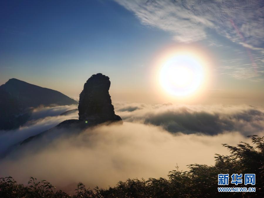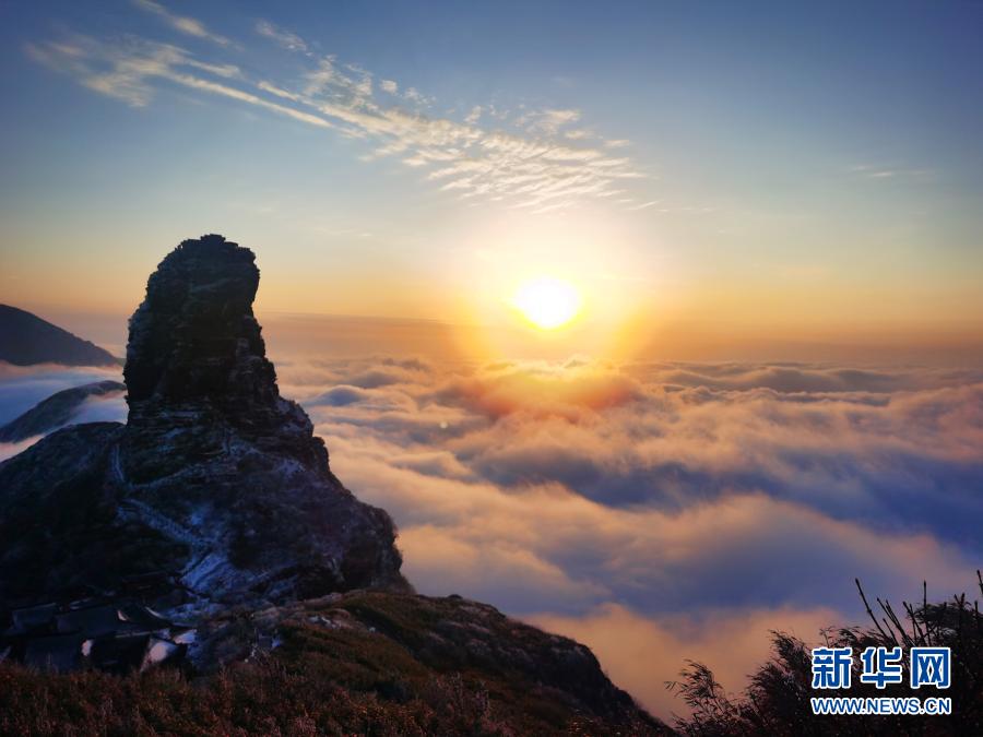 1月17日在贵州铜仁梵净山拍摄的夕阳云海景观。新华社发(李鹤 摄)