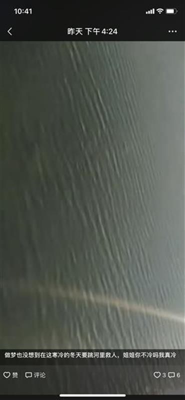 “我看见她一会浮在水面,一会又沉下去,非常担心。”刘威威事后回忆说,“落水点距离岸边虽然只有50米左右,但当时水冰冷。快到岸边时,河水不太深,已经能够用脚踩到河床,但是身子冻僵了,根本站不起来。河床下面石头又多,我是一路‘枕’着石头被拖到岸边的,全身的力气都用在保持她的身体姿势上,避免她被石头磕伤。”