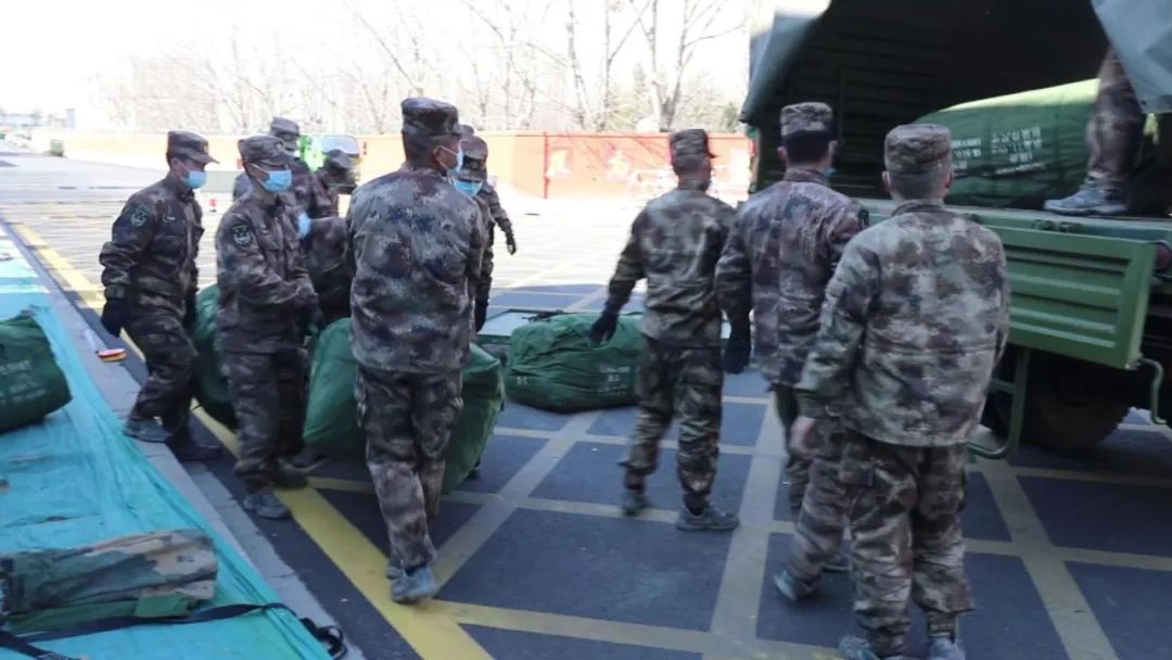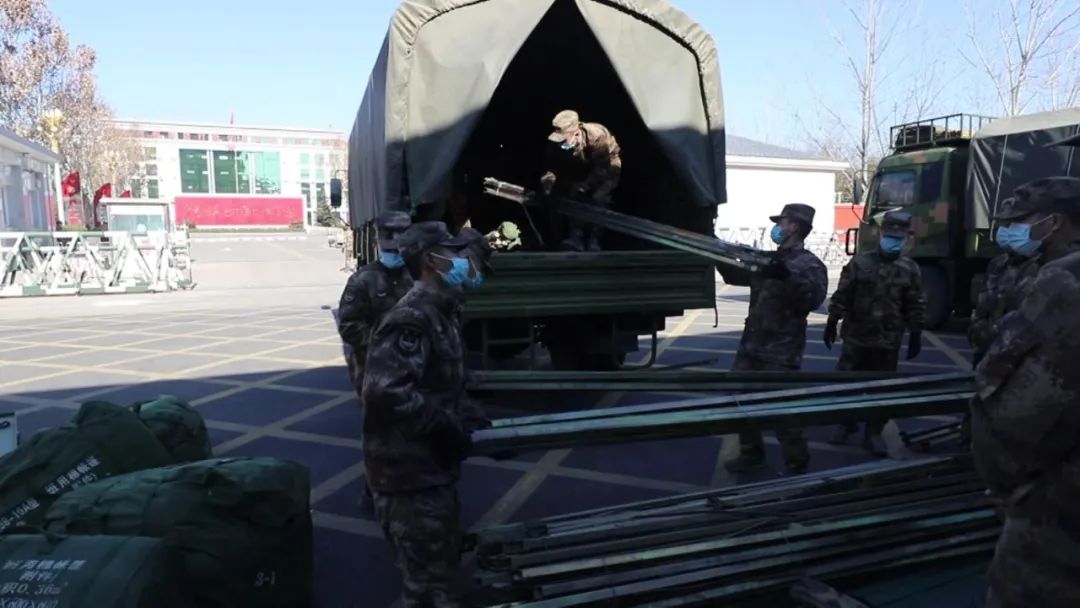 1月17号下午,中部战区陆军某直属旅响应邢台市人民政府抗疫请求,迅速筹措防疫物资,出动运输车队,将五个点位的40余顶军用帐篷集中清点装车,紧急运往南宫市。