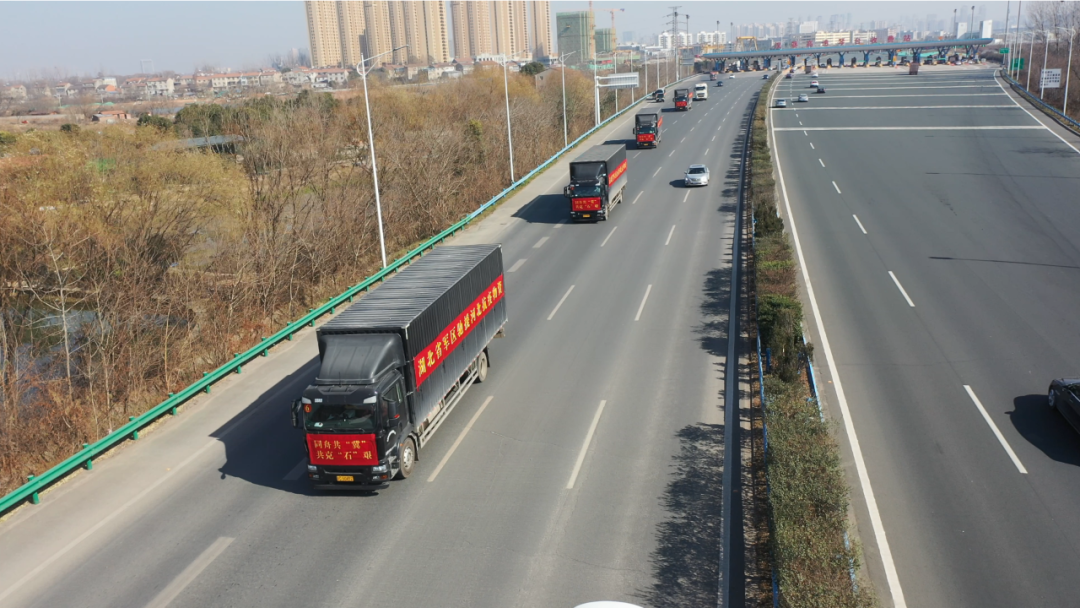 记者在现场看到,车辆、物资箱上,都贴上了“同舟共‘冀’,共克‘石’艰”“患难相济,合力战疫”等标语,表达湖北省军区和河北军民并肩抗疫的意志和决心。