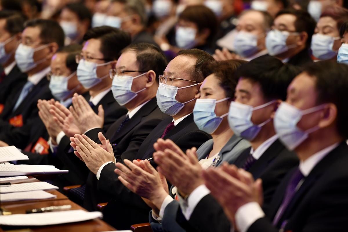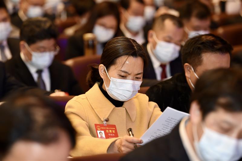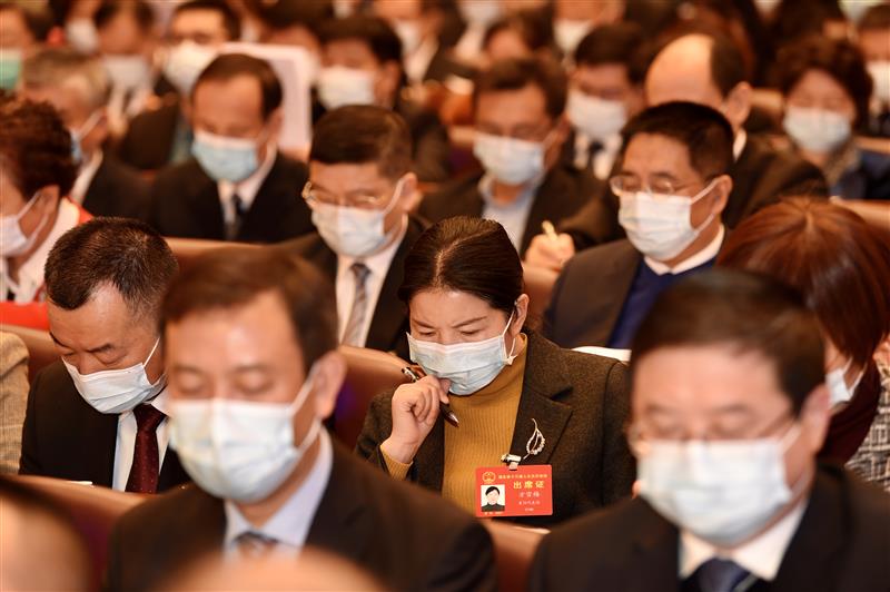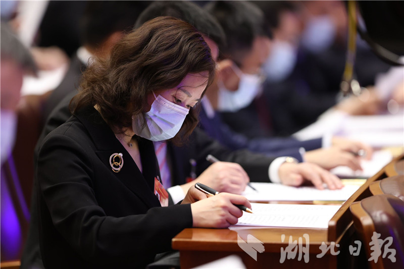 省人大代表在听取《政府工作报告》。(湖北日报全媒记者 李溪 摄)