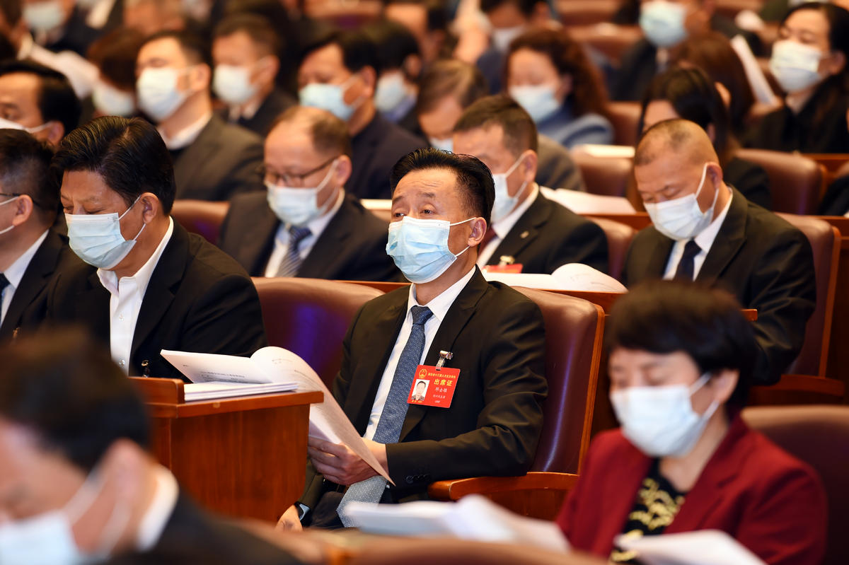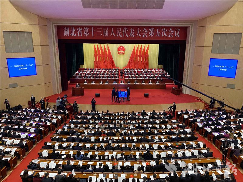 2021年1月24日上午,湖北省十三届人大五次会议在武汉洪山礼堂隆重开幕。(湖北日报全媒记者 柯皓 摄)