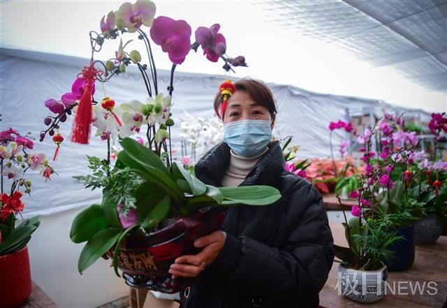 在园区花卉路,走进红新园艺店内,摆满了各种鲜花绿植,五彩斑斓、花香四溢。君子兰、蝴蝶兰、大花蕙兰、金桔、百合、风信子等“吉利又喜庆”的年宵花开得格外艳丽。老板方振邵告诉极目新闻记者,针对今年的年宵花市场,该公司已经准备了数千盆,50多个品种的花卉,包括30多个主打品种。“晚上还有一大批蝴蝶兰到货,都是为了年前的花市准备的。市民现在买花会比较实惠,预计临近春节,价格会略有上涨。”