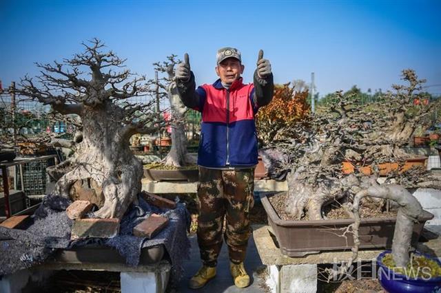 在盆景路,各式盆景造型各异,极具特色,种类包括对节白蜡、三角枫、榆树、罗汉松、金弹子、杜鹃、赤楠应有尽有,特别是园区一些商家推出的微盆景,市民可以摆在家中或者办公室,显得特别精致而又别具一格。