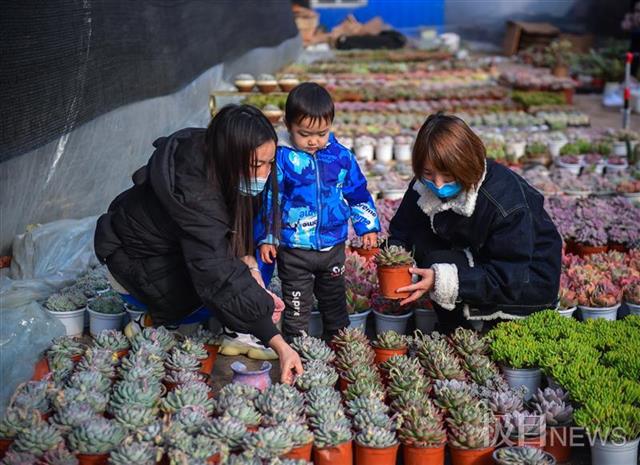 在小熊猫多肉店内,老板郭江龙正在盘整一大朵多肉,作为一家以生产销售多肉植物为主的商家,面对逐步火热的年宵花市场,老板也是干劲十足。“多肉好养,基本不需要打理。我们的客户来自黄石、咸宁、黄冈等全省各地,年前备足了上万盆多肉,到店内买花,基本都是批发价,比网购还便宜两成。”现场,极目新闻记者了解到,当前年宵花卉市场都在向家庭消费、个性化消费转型,价格也更加亲民,80%的花卉都是市民消费价,大约60%花卉单价在100元之内。