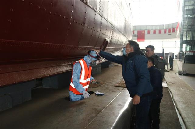 图为:除锈加固(武汉市中山舰博物馆供图)