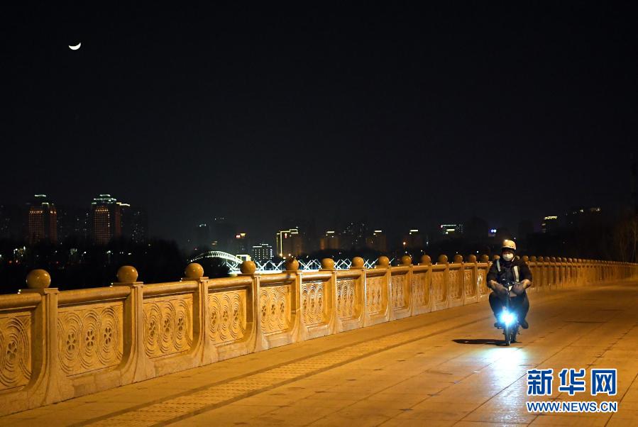 代驾师傅惠兰芳骑行在郑州街头,准备到下一个地点等单(1月18日摄)。新华社记者李安摄