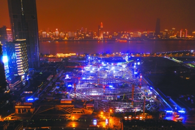 华夏幸福武汉长江中心项目昼夜奋战,灯火通明。