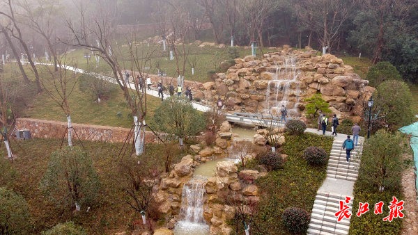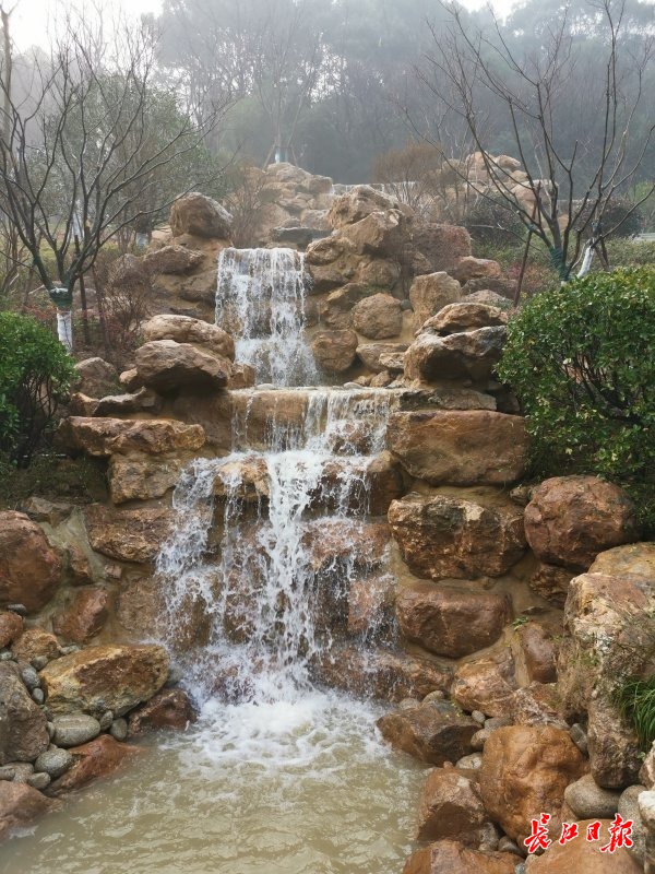 28日上午9点,记者来到汉阳龟北路新建的索园跌水瀑布景点,尚未到达,就听见哗哗的流水声。