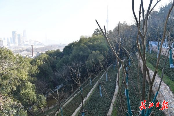 记者踏访看到,龟山北坡从古琴台立交附近的西边山脚,一直到晴川大道附近的东边山脚,沿线拆除不必要的建(构)筑物后,新建了绿地和几座游园,形成了一条基本完整的绿化带,其间多处种有杜鹃花。在台地花园和龟山南坡,也种有大片的杜鹃花。