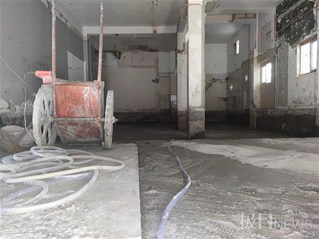 极目新闻1月29日讯(见习记者周浩)29日,武昌区尚隆地球村小区居民反映,小区楼下店铺装修,向下挖了数十厘米,居民十分担心住房安全。对此,小区物业和街道办城管部门均表示,装修未破坏承重柱,下挖是为了维修管道,已通知店主尽快恢复原貌。29日上午,极目新闻记者来到该店铺前。该店铺是小区22栋的裙楼,店前设有围挡,围挡内放有多块木板。店铺卷帘门并未完全关闭,店内原装修已完全拆除,地面有水泥回填的痕迹。