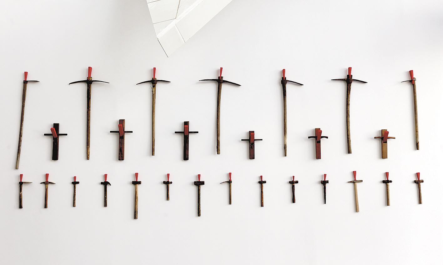 在作品《木经》中,傅中望返璞归真,将从农村中收集的陈旧、古老甚至损坏了的物件,摆放成一个艺术装置,以此唤醒人们的记忆,“中国古代建筑中最早的木经,涵盖建造、制造木业的法则。”