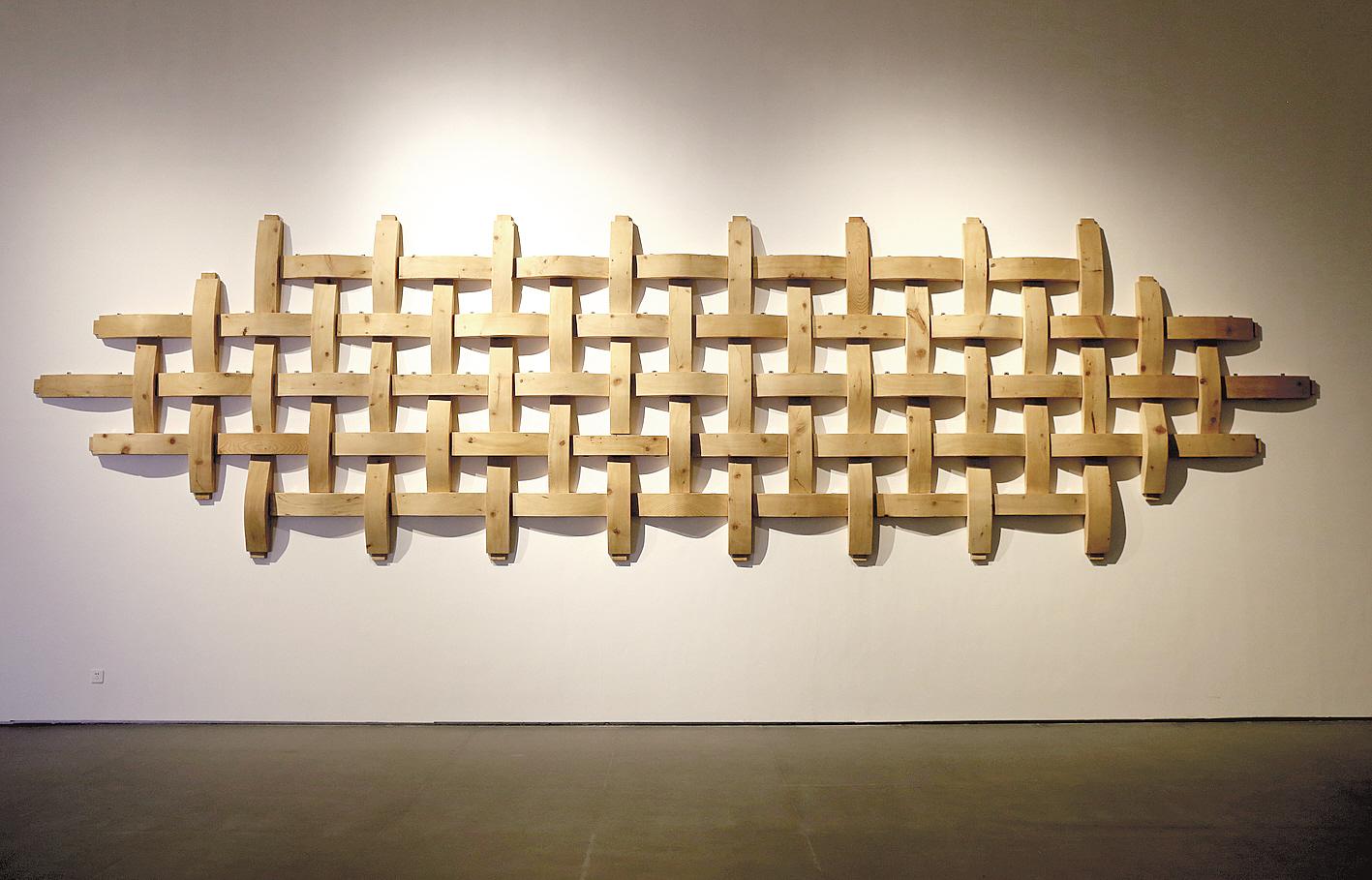 将传统文化元素不断延展、重复,大面铺开,会产生新的气势,作品《无边界》正是傅中望这种观点的艺术实践。同时,榫卯不仅是木头和木头之间的连接,也可以和石头、陶器、不锈钢、废旧钢铁等连接,于是他又提出了“异质同构”的概念,并创作了一系列作品。