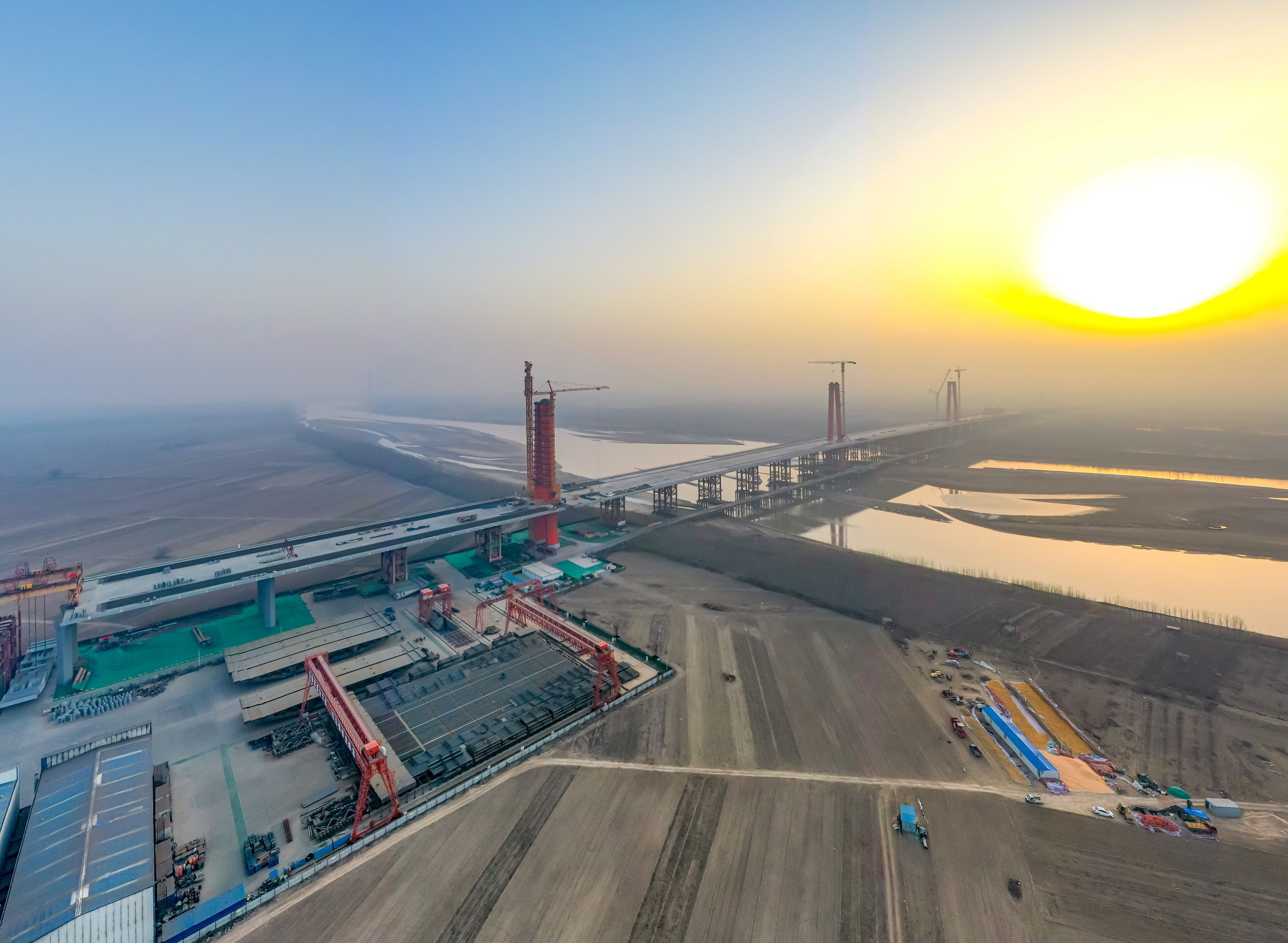 在建的济南凤凰黄河大桥。 通讯员张玉奇 提供