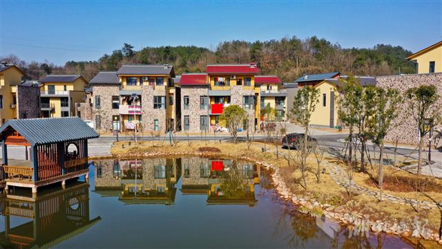 1月28日,远安县鸣凤镇北门村九子溪特色农房小区。近年来,远安县作为湖北省农村住房建设试点县,准确把握人口梯次转移规律,初步探索出一条符合远安实际的特色农房建设新路。从2018年开始,远安县与相关规划设计研究院系统梳理了乡村近10年来在生产方式、生活方式、村庄功能上的变化。在充分征求群众意愿后,远安县对农房建设推出了22套户型。目前,远安县鸣凤镇九子溪小区和双泉小区两个示范小区指导农民理性建房,让农房既能满足生产生活需求,又“记得住乡愁”“承载了梦想”,发挥着示范作用。(视界网 刘中一 摄)