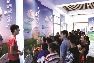学生在保安湖国家湿地公园宣传馆学习湿地知识