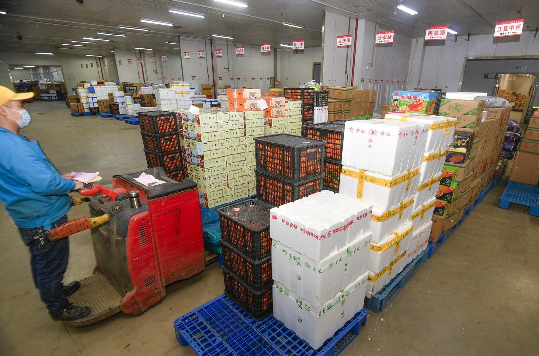 一箱、一箱、再来一箱……武汉市江夏区中百集团生鲜物流园南19号码头,不到半小时的功夫,一辆小货车内的数十箱大白菜被27岁的搬运工江光勇搬到托盘上,稳稳码好,然后分批推进仓库。