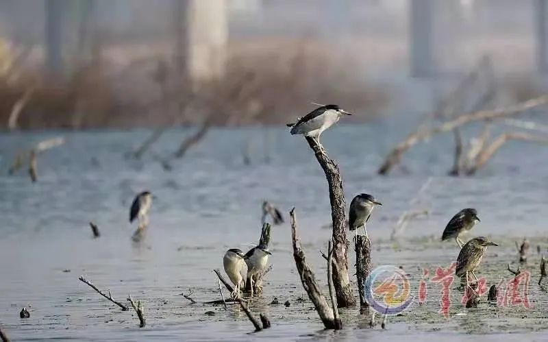 2019年1月17日,记者在汉江拍摄到成群的夜鹭。
