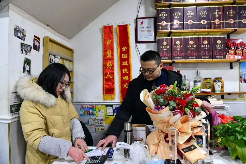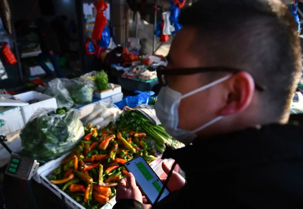 ↑1月30日清晨,张家丰在市场采购食材。