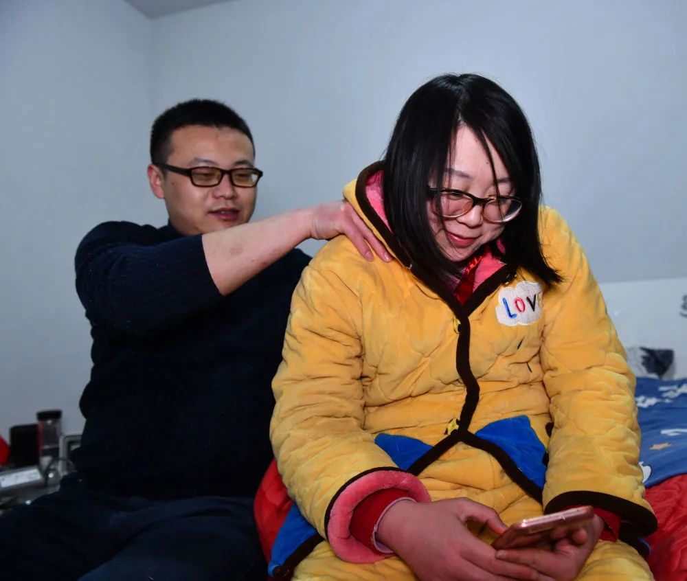 ↑1月30日,张家丰在家中给张晓宇按摩。这是张家丰每天睡前都要为张晓宇做的事。