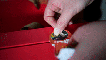 ↑1月31日,张晓宇在经营的餐馆内给自家品牌的熟食礼盒上贴标签。