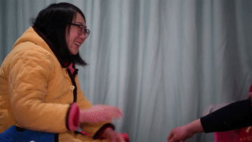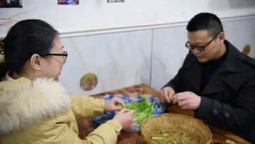 ↑1月31日,张家丰和张晓宇在经营的餐馆内处理食材时,张晓宇调皮地与张家丰嬉闹。