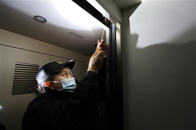在母婴室,洪雨佳打开婴儿护理桌,用手摇一下后,拿出起子把每个螺丝拧一遍。来到厕所,洪雨佳推拉几下厕所门,发现关门后有缝隙。因个头不够,洪雨佳搬出一旁的垃圾桶放倒,很自然地踩了上去。拧螺丝、拆门头档板、调整止挡位置,洪雨佳一气呵成。反复调试后,门终于严丝合缝。洪雨佳说,厕所门关不严、开关不顺畅或被反锁,会给旅客造成不好的体验。