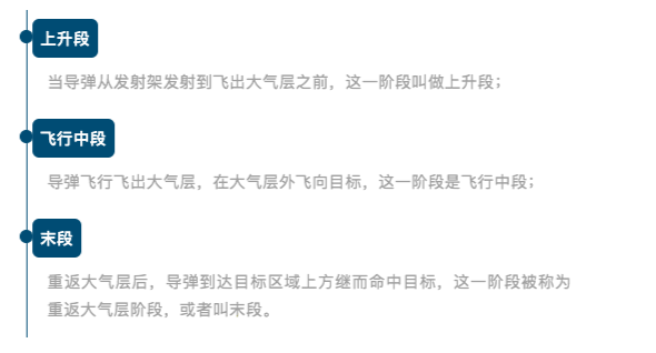 针对导弹的三种飞行阶段,自然而然也就分别对应了三种拦截方式:“助推段”防御系统、“中段”防御系统、“末段”防御系统。