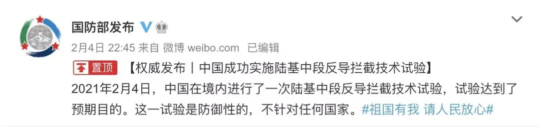 国防部4日晚间重磅宣布:我国成功实施陆基中段反导拦截技术试验。