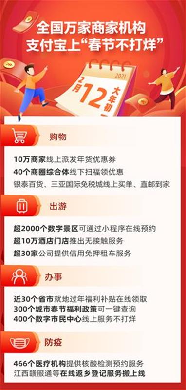 宅家享受云生活,出门玩遍本地山水,就地过年也带火了本地出游。据了解,春节期间,全国超过2200家景区将通过支付宝提供在线预约服务。