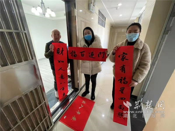 据了解,为避免人员聚集,本次活动仅邀请了部分抗疫医护家庭代表参与活动。活动过后,社区网格员、下沉党员成立“送春联送福”行动小组,将余下的春联和“福”字分别送到15个医护家庭,传递新春最美好的祝福。