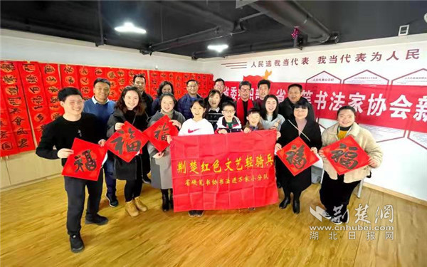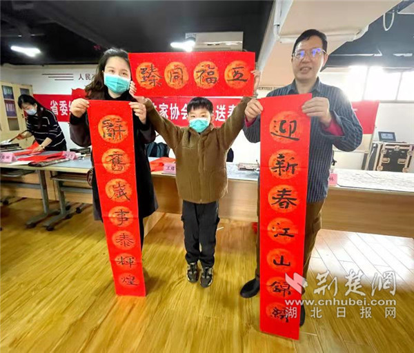 荆楚网客户端—荆楚网消息(记者李燕 通讯员李雅婷)2月6日,武昌区中南路街群建社区在新时代文明实践中心举办“书法名家送祝福,翰墨飘香迎新春” 新春写春联送祝福活动。省委组织部下沉群建社区工作队队长苏书才,街道党工委书记陈烈和部分抗疫医务工作家庭代表参加活动。