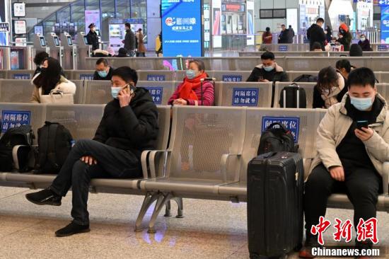 2月9日,河北石家庄火车站候车大厅,出行的旅客保持间隔候车。